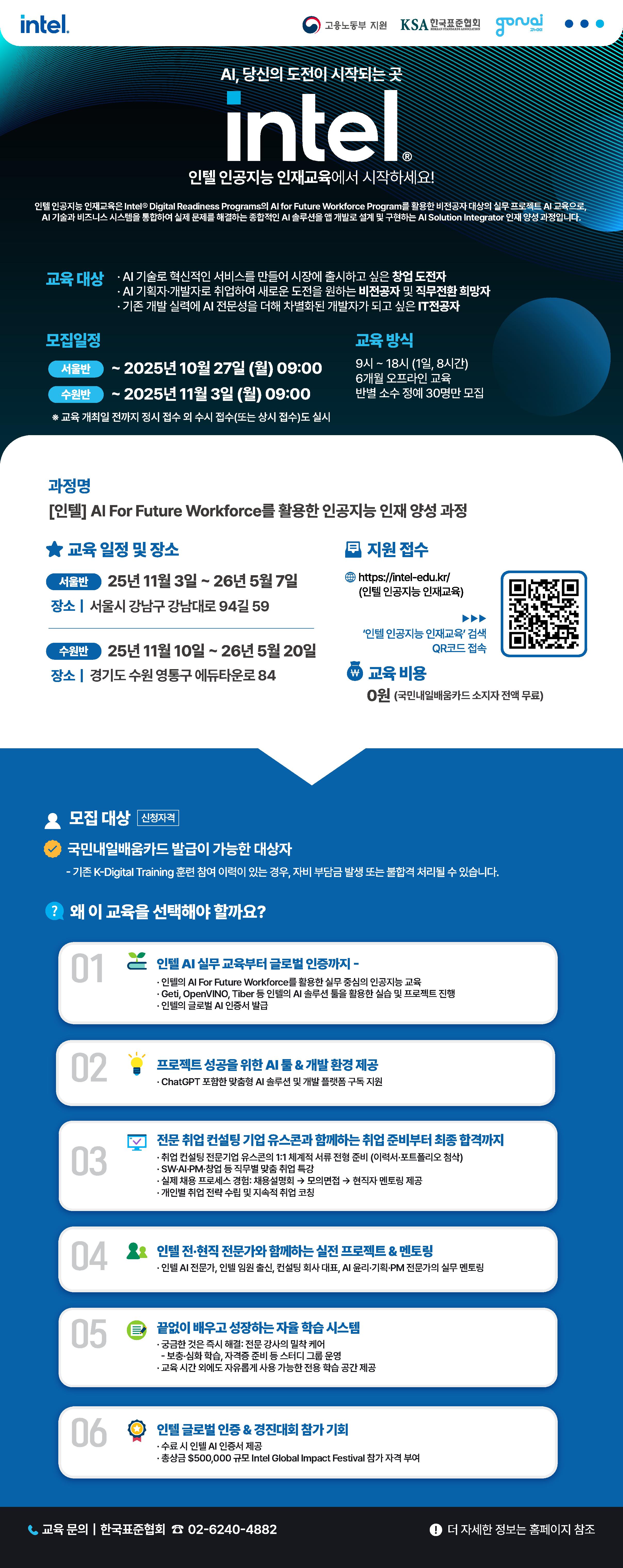 (무료과정) "[인텔] 인공지능 인재 양성과정" 훈련생 모집