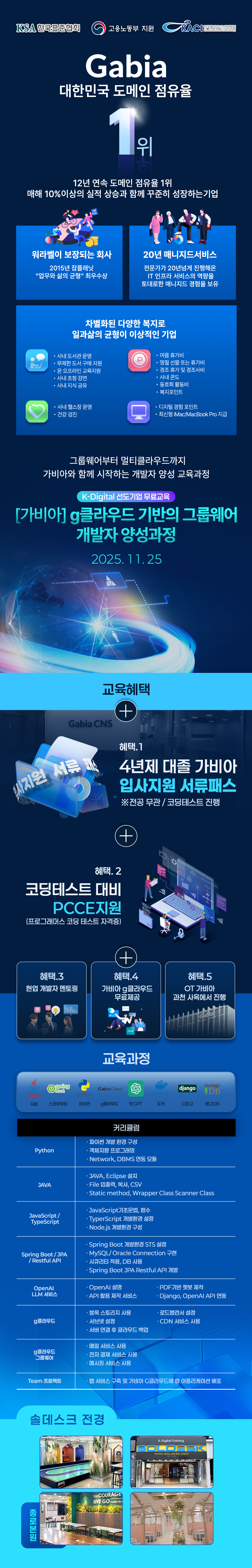 (무료과정) "[가비아] g클라우드 기반의 그룹웨어 개발자 양성과정" 5회차 훈련생 모집