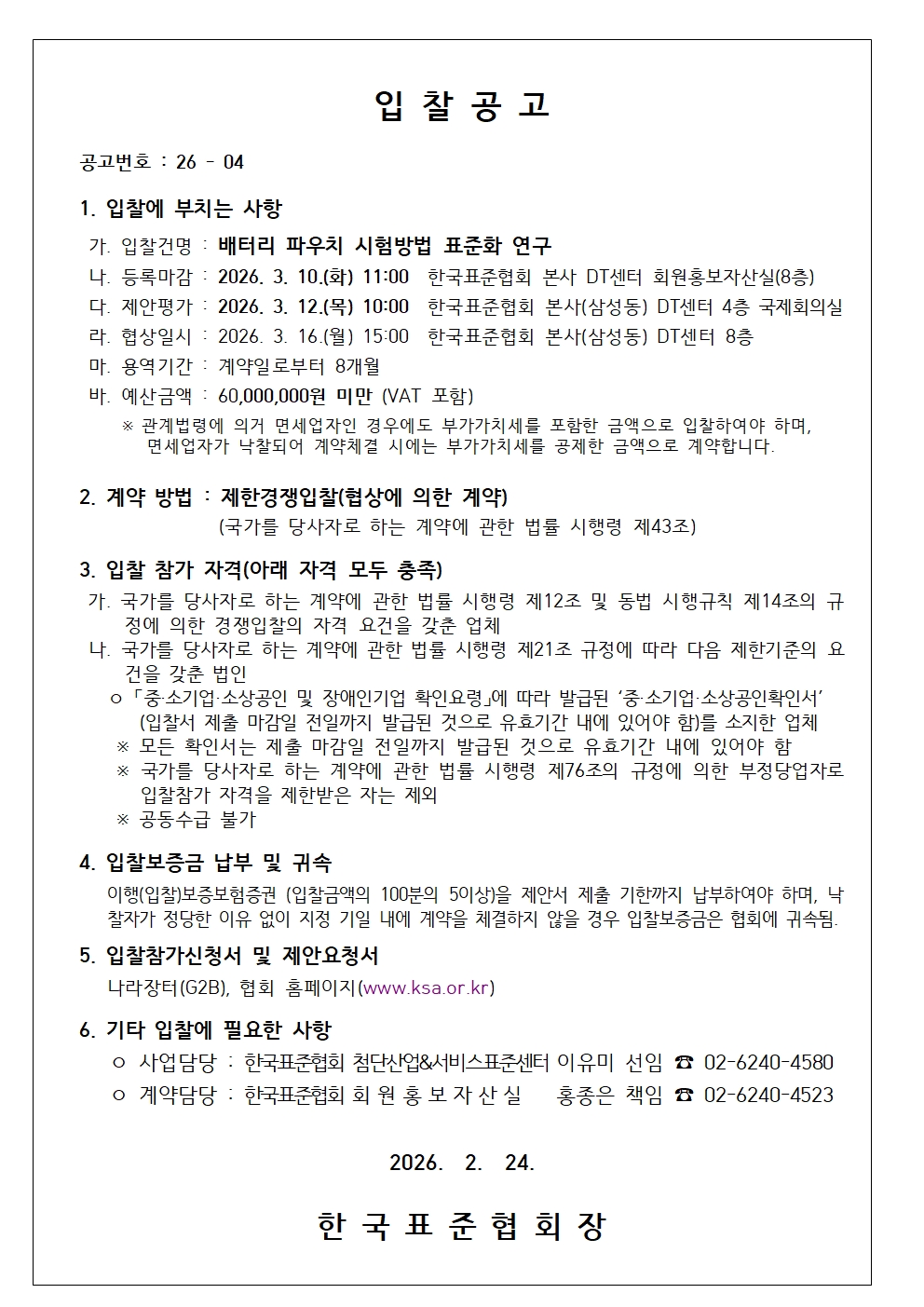 [입찰공고]배터리 파우치 시험방법 표준화 연구