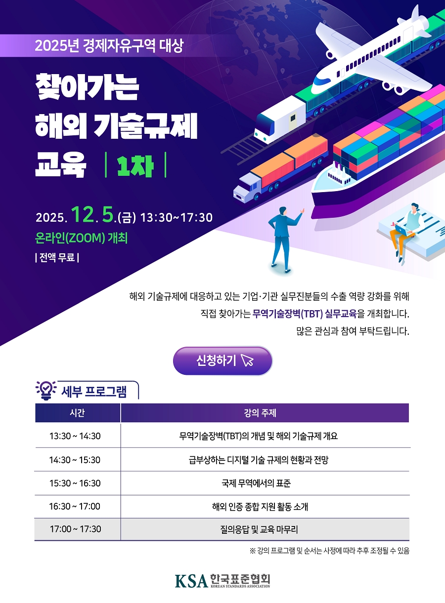 "수출 역량 강화를 위한 해외 기술규제 교육을 개최합니다.