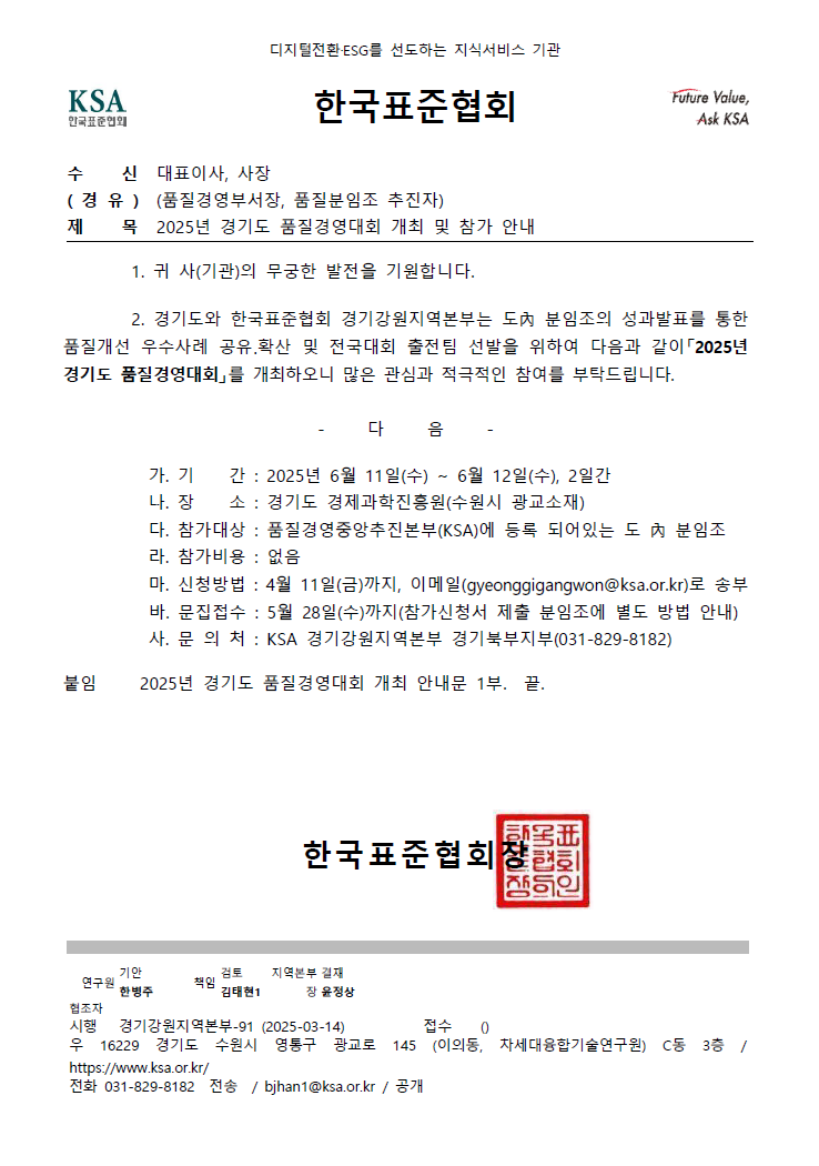 [경기] 2025년 경기도 품질경영대회 개최 안내