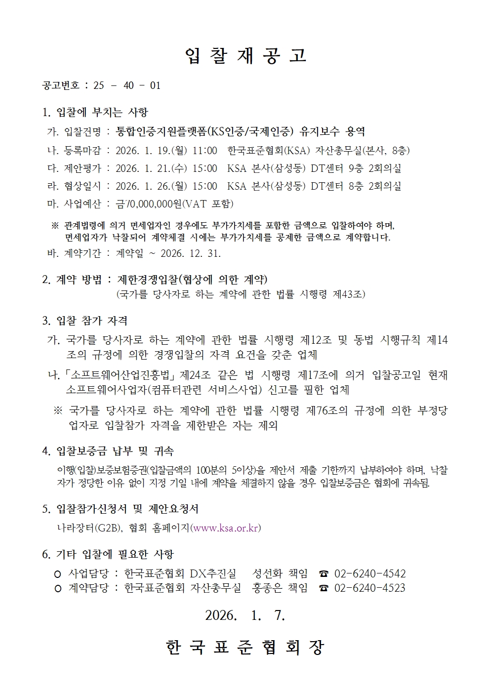 [입찰재공고]통합인증지원플랫폼(KS인증/국제인증) 유지보수 용역